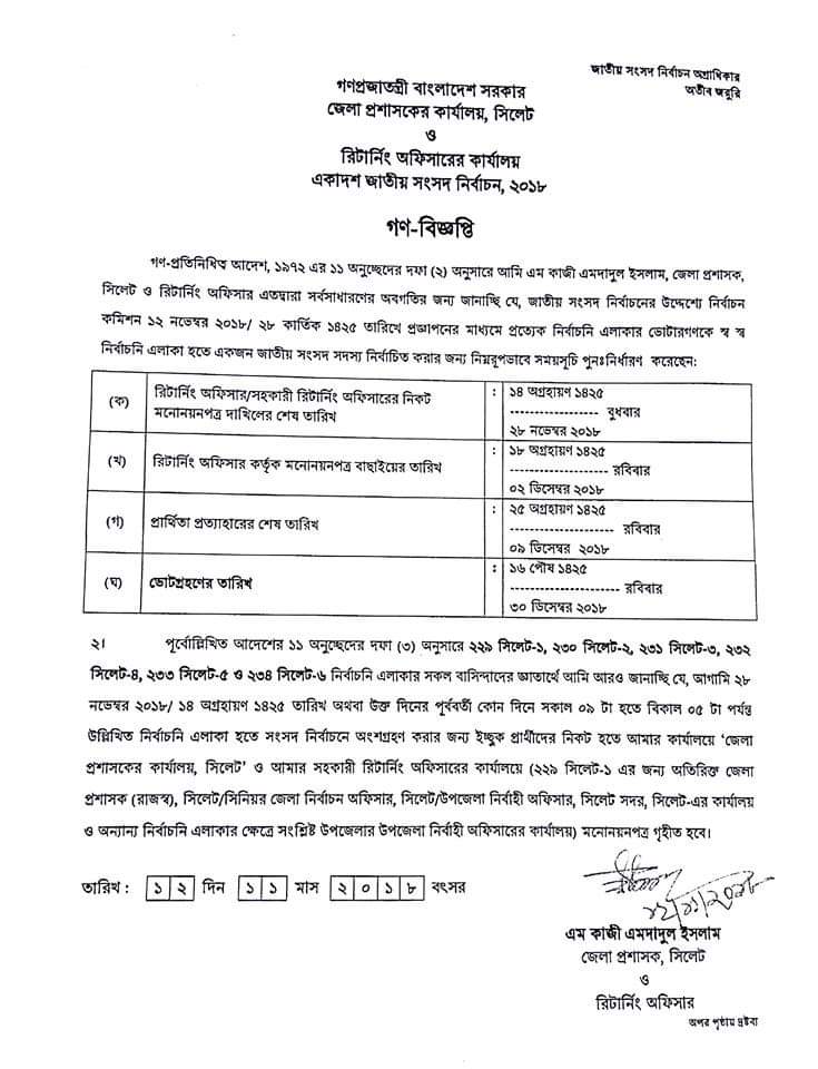 নির্বাচন সংক্রান্ত গণবিজ্ঞপ্তি