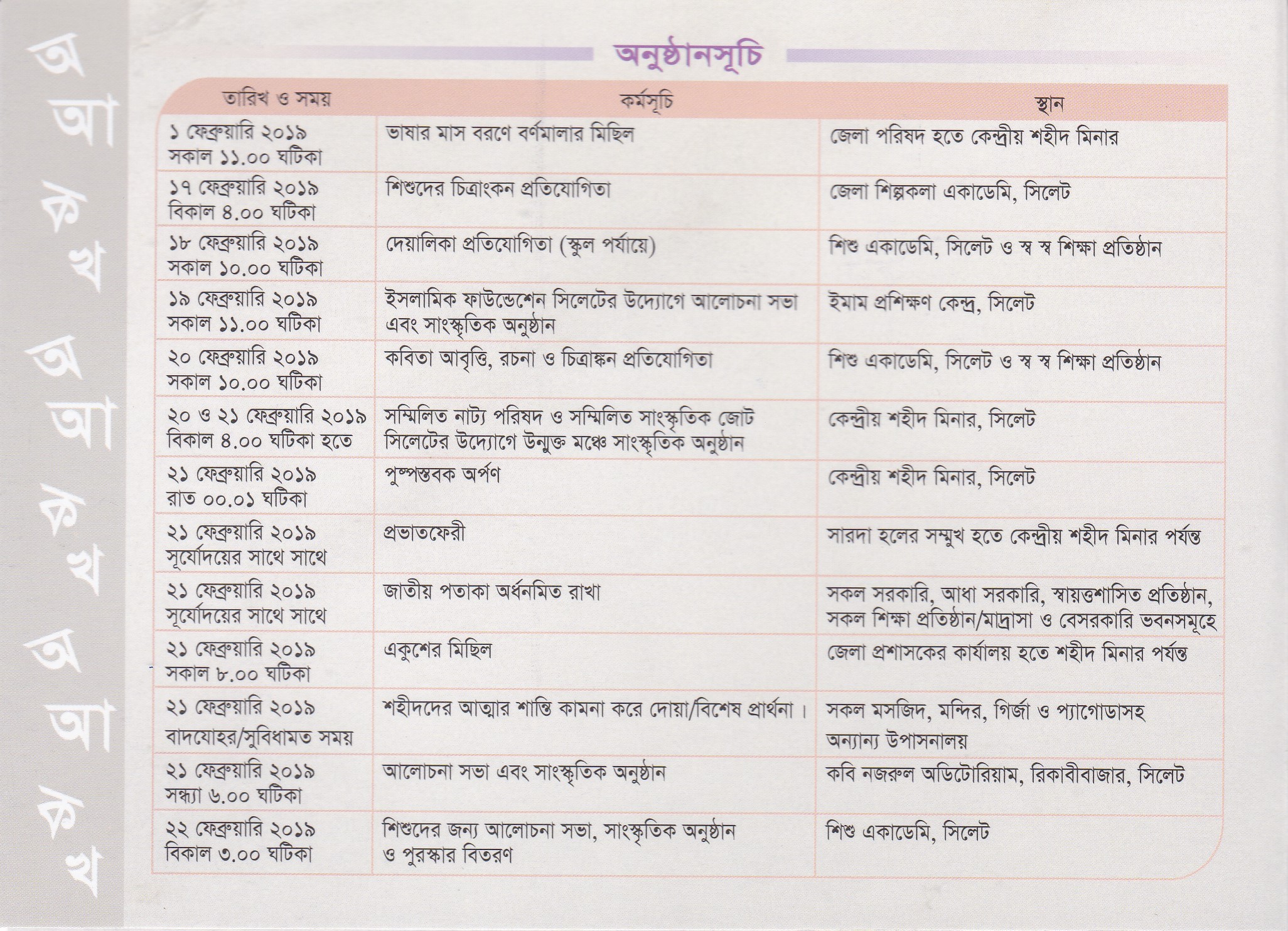 শহীদ দিবস ও আন্তর্জাতিক মাতৃভাষা দিবস ২০১৯ এর অনুষ্ঠানসূচি